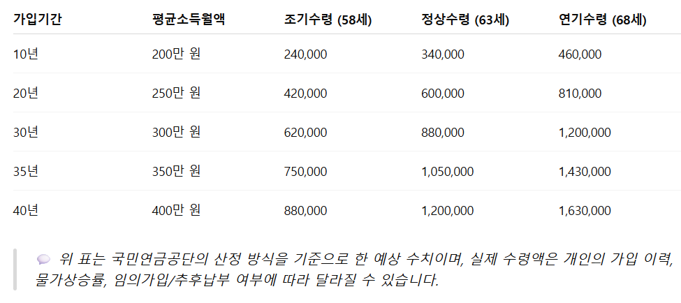 ※ 수령액은 개인의 가입 기간과 납입 금액에 따라 차이가 있습니다.