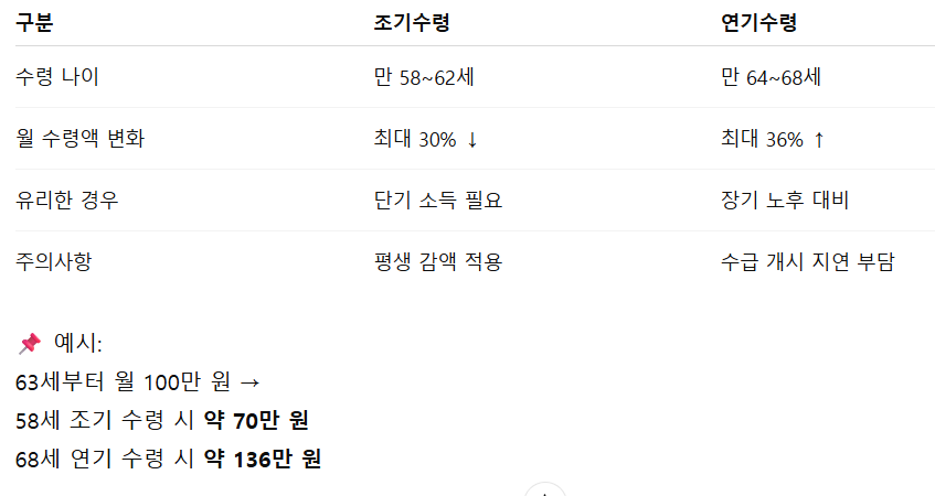 ⏳ 4. 조기수령 vs 연기수령, 어떤 게 나에게 유리할까?